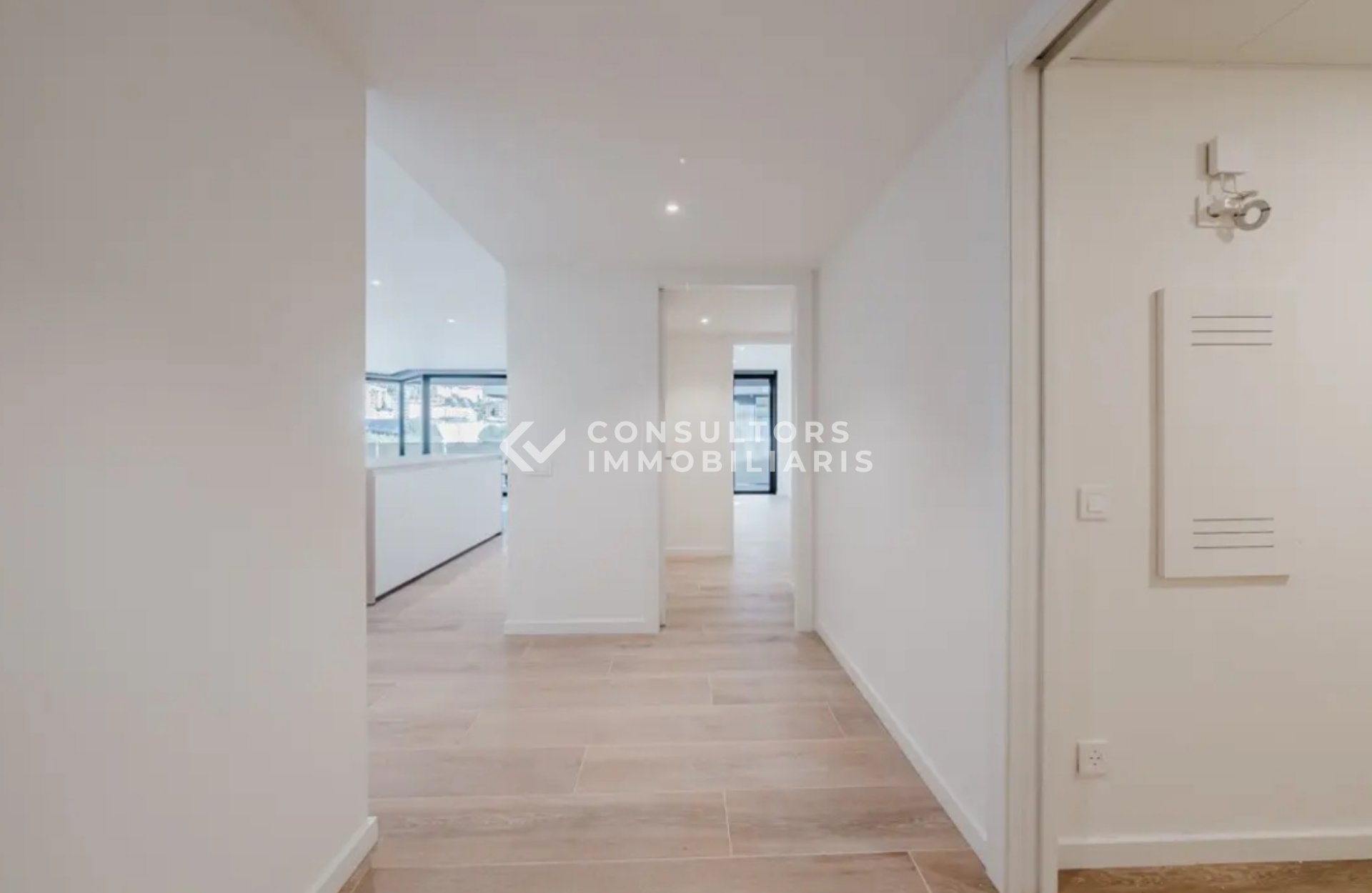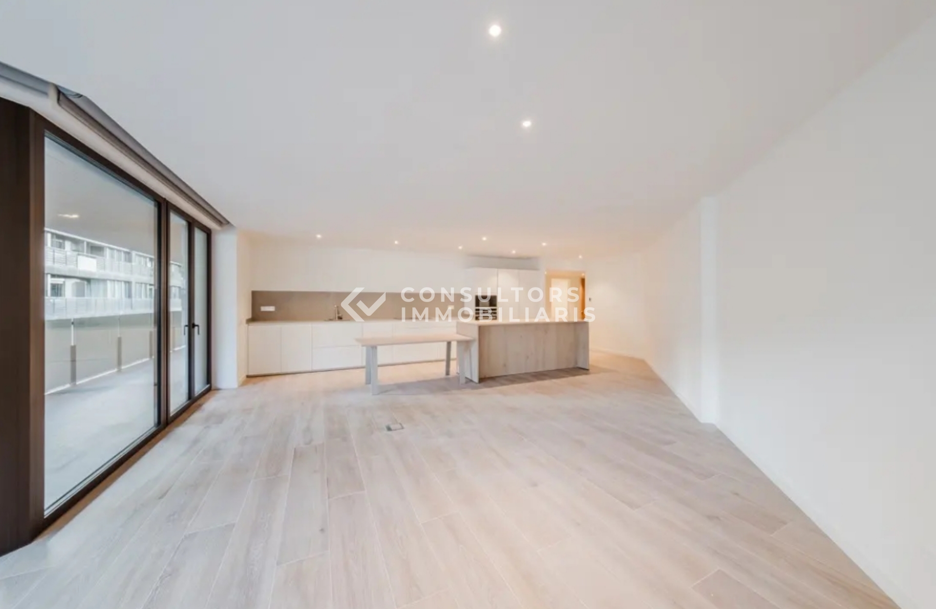 L’habitatge compta amb una distribució moderna i elegant formada per 3 dormitoris, 2 banys complets, 1 safareig i un saló menjador amb cuina oberta, equipada amb electrodomèstics d’alta gamma i acabats de primera qualitat.